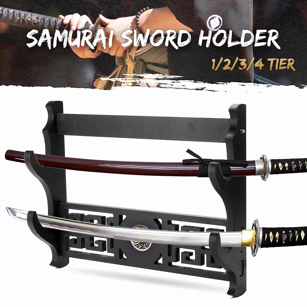 Meigar 1/2/3/4 Layer Wall Mount Samurai Sword Holder Katana Holder Stand Hanger Bracket Rack Display Black Home Decor Crafts